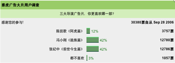 雅虎、つまりYahoo! で陳凱歌、馮小剛、張紀中の3人の著名監督による