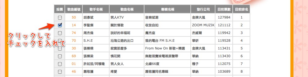 まずは投票したい曲を選びます。