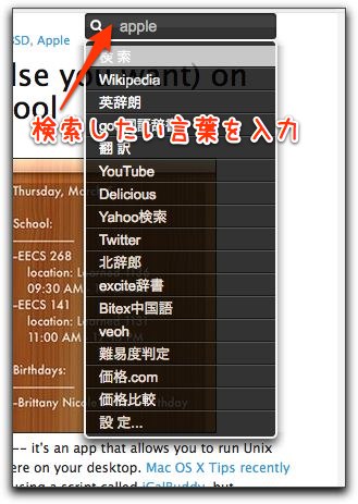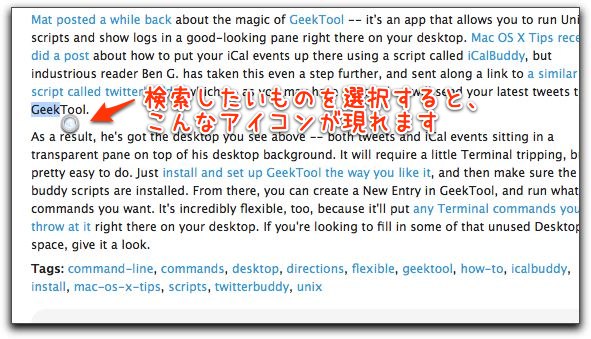 今のウィンドウ上で、知りたいことをそのまま検索することができます。