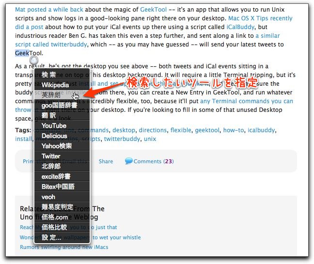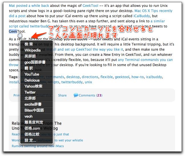 このPrintWhatYouLikeに限らず、ブックマークレットは便利なので、翻訳用とかオンラインブックマークのDelicious用とか、いくつか登録して便利に使っています。