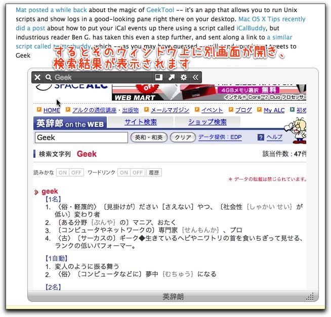 調べたい言葉などがある時に、新たにウィンドウやタブを開くことなく、現在のウィンドウ上で完結してしまうのがいいですね。