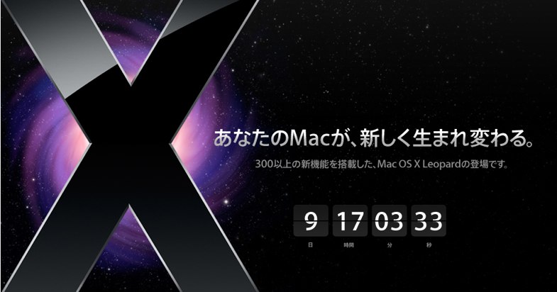 Appleのトップページでは、Leopard発売に向けてのカウントダウンも始まっています。